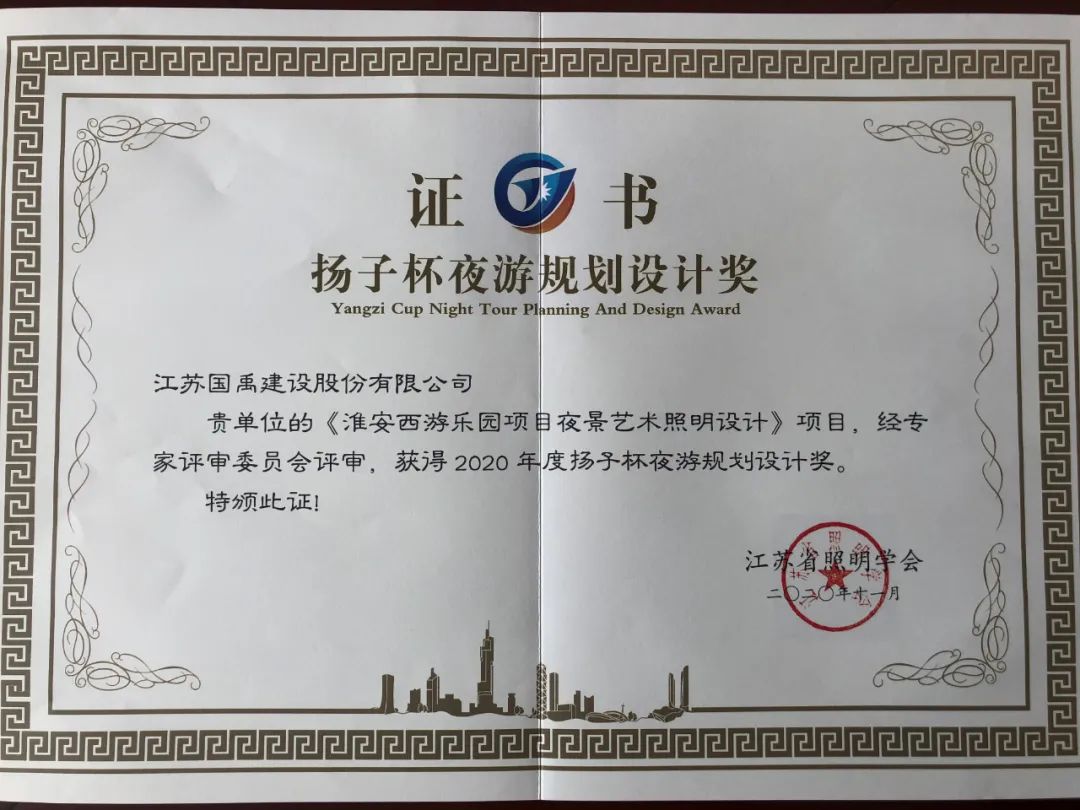 国禹建设凭借优质工程项目和创意设计,在2020年“扬子杯照明奖”评选活动中荣获四项大奖。扬子杯照明奖是江苏省照明学会针对国内外照明领域在科学研究、技术创新、创意设计、照明及夜游工程中做出杰出贡献的组织和个人而设立的行业专项奖励。